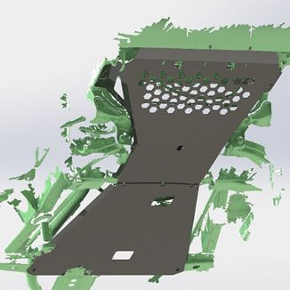 Vented to optimise cooling over radiator/sump, and strategically bent to increase strength without adding weight.